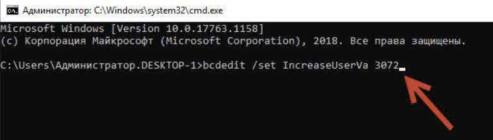 В командной строке пишем команду «bcdedit /set IncreaseUserVa 3072»,